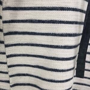 In good previously owned condition. Some slight pilling which is typical of this fabric in the striped portion. So cute! Lace hem with tie in the back closure. Colors are cream and navy striped with white lace.