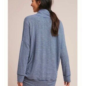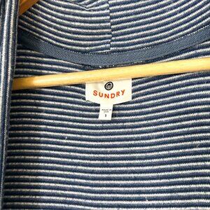 Anthropologie Sundry Brushed Fleece Cocoon Cardigan Blue White Stripe Size 1