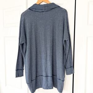 Anthropologie Sundry Brushed Fleece Cocoon Cardigan Blue White Stripe Size 1