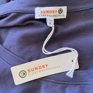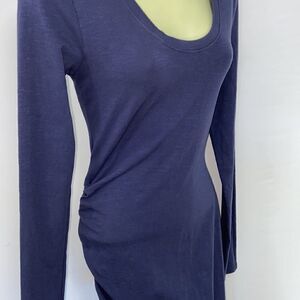 BY ANTHROPOLOGIE, HERE IS A WONDERFUL SUNDRY BODY CON DRESS FOR ALL OCCASIONS. IT IS A COTTON/SPANDEX BLEND SO IT DOES HAVE STRETCH. IT IS DONE IN NAVY BLUE AND FEATURES A SCOOP NECK AND LONG SLEEVES. THE RIGHT SIDE IS RUCHED WITH AN ADJUSTABLE TIE. PULL OVER STYLE.COASTAL CASUAL WITH A FRENCH VIBE! NEW WITH TAGS! SZ XS, PLEASE NOTE THE MEASUREMENTS