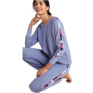 Anthropologie Sundry Mosley blue embroidered french terry pullover XS