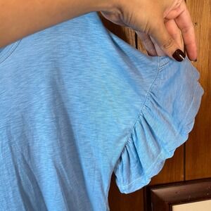 Anthropologie Sundry Women's Blue Ruffle Sleeve T-Shirt Pima Cotton Casual Top