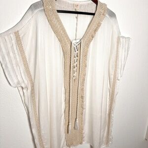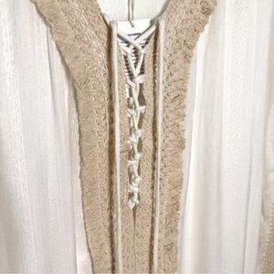 Delicate, romantic, Bohemian, boho chic style white and beige swimsuit cover up or tunic.