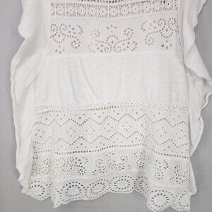 Anthropologie Sustainable Lace Tank Size XL White Eyelet Coastal Feminine Beach