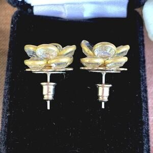 Anthropologie Swarovski Crystal Cluster Flower Earrings Gold Plating Formal
