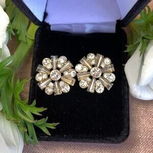 Anthropologie Swarovski Crystal Stud Snowflake Earrings w/ Beads Brass Setting