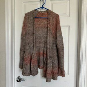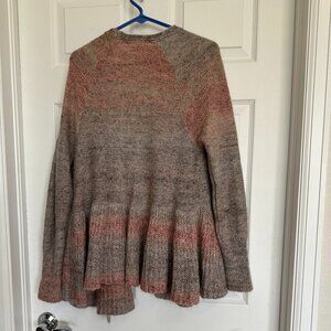 This Anthropologie sweater is in pristine condition and it is a size Medium. Its exquisite style, high quality material, impeccable workmanship, elegant fashion sense, and attention to unique details make this artistic red and gray ombre colored sweater an item you will want to wear again and again. The unique open flow of the body and the flaired accents of the sleeves make this striking and stunning sweater an incredible addition to any wardrobe. The unique pattern adds to the whimsical sway and fun appeal of this item. The unique colors truly make this piece super interesting and stunning. The sweater totally flows and flatters with character and charm. It is in pristine condition and can be dressed up or down, depending on your mood. It is a super bargain for only $39. If you bundle three items together from my closet, you automatically get 15% off of each item and you also only have to pay one shipping fee. So have fun shopping.