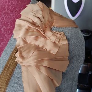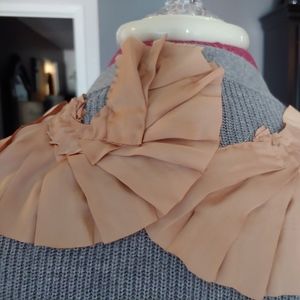 Absolutely stunning sweater with gold satin appliqués surrounding the collar and right shoulder. Flared at the bottom with 2 pockets. Gently worn, still in like new condition.