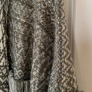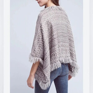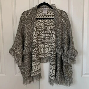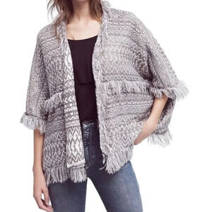 Anthropologie Sweater Cardigan Fringe Open Front Kimono Shawl Wrap Gray One Size