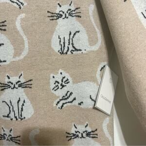 Anthropologie Calligraphie Tan Sweater All Over Cat Kitty cozy Christmas