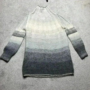 Anthropologie high neck sweater / pullover in grey shades wide stripes.