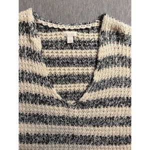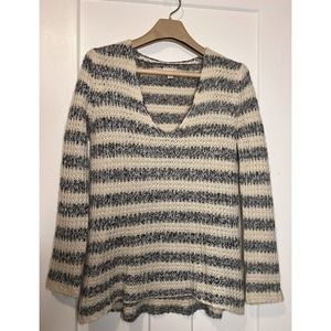 Anthropologie Sweater “Hinge” Size Small Off White Gray Black Super Soft Vneck
