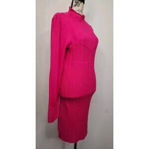 Anthropologie Sweater Mini Dress SZ M Pink Mock Turtleneck Fuchsia Retro