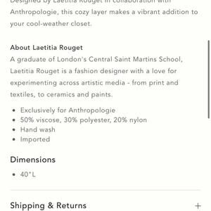 laetitia rouget exclusively for anthropology one size kimono sweater. super unique, gorgeous and quality fabric! rare limited edition midi length. longline open cardigan red and pink with design. flat across underarm 23. lengths 37 in. gently pre-owned condition light wear on fabric only.