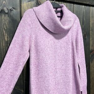 Anthro brand sweater. Size small. Purple. Oversized turtleneck / cowl neck design. Ribbed. Stretch material. Cozy. Great for fall & winter. Preloved. Please see all photos for condition. Pulled thread on neckline (pictured).