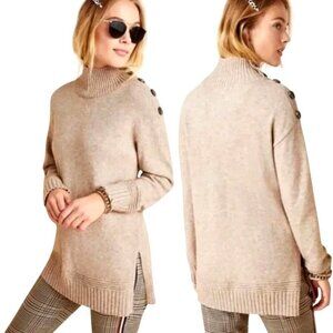 Anthropologie Sweater Women XS Beige Tan Knit Button Shoulder Margarita Tunic