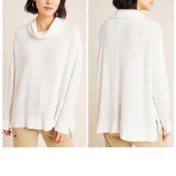 Anthropologie Sweater Women's Medium Maeve Cowl Neck Cream Ribbed Relaxed Fit