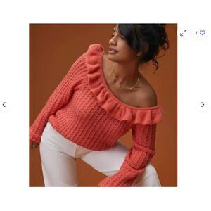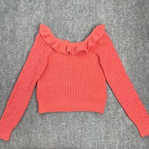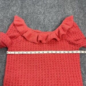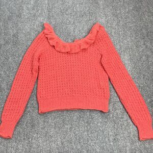 Anthropologie Sweater Womens Size Medium. Ruffle Neck Waffle Knit Cropped. Polyamide, Acrylic, Wool Blend. Coral.