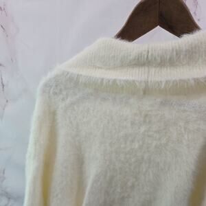 Anthropologie Sweater Womens Small White Eyelash Vegan Cashmere Drop Shoulder