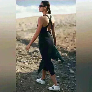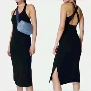 Anthropologie Sweaty Betty Emily Strappy Back Rib Dress in Black