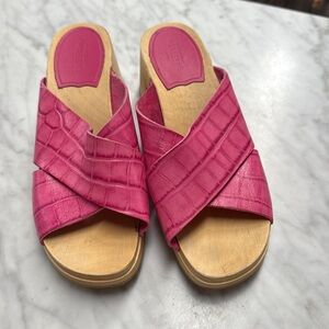 Anthropologie Swedish Hasbeens Anette Pink Wooden Heeled Skip On Clog Sandal 39