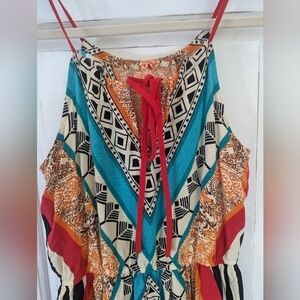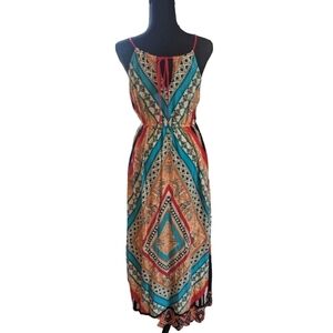 Anthropologie Sweet Wanderer Geometric Multicolored Boho Chic Maxi Dress Size S