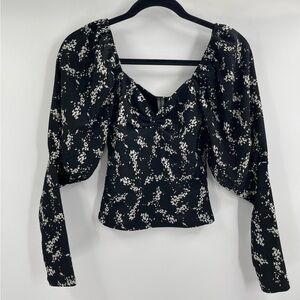 Anthropologie Sweetheart Top Puff Sleeve Blouse Black Floral Size Xxs