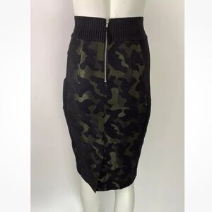 Anthropologie Sz 0 Camo Print Pencil Skirt Green Black Cotton Polyester