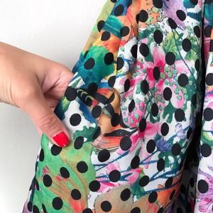 Absolutely stunning dress by Corey Lynn Calter featuring with polka dot design over flora and fauna background of tropical flowers and birds. I really love this dress and can hardly stand to part with it but I haven't worn it in quite a while.