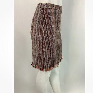Anthropologie Sz 2 Tweed Fringe Hem Pencil Skirt Multicolor Cotton Acrylic