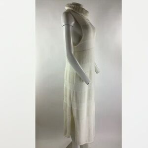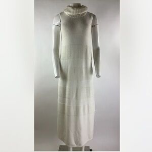 Anthropologie Sz L Turtleneck Knit Sweater Dress Cream Cotton Wool Sleeveless
