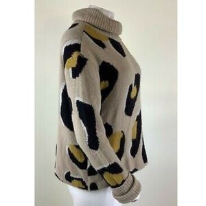 Anthropologie Sz S Georgia Turtleneck Sweater In Leopard Print Tan Acrylic