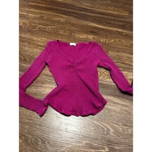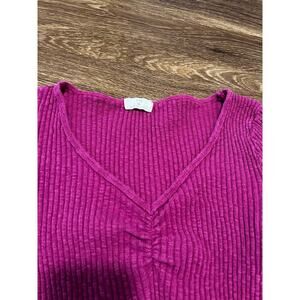 Anthropologie T. La V-Neck ruched Ribbed sweater dark pink color size XS could fit a small!