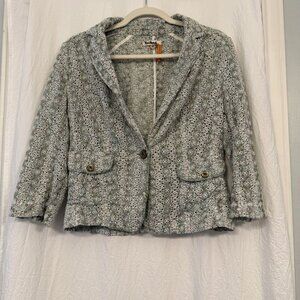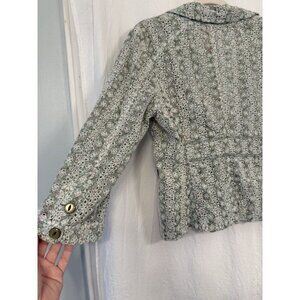 Anthropologie TAIKONHU Blazer Green Pink Floral Eyelet Fitted Jacket CUTE size 6