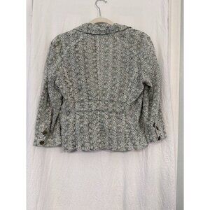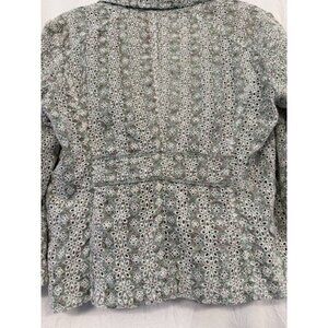 Anthropologie TAIKONHU Blazer Green Pink Floral Eyelet Fitted Jacket CUTE size 6. Light green and pink flowers. 100% cotton. Excellent preowned condition. See photos for measurements.