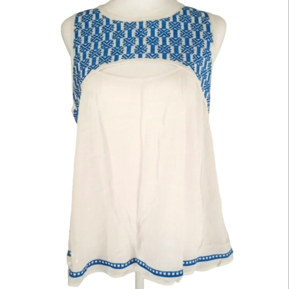 Anthropologie THML Blue & White Cut Out Gauzey Lightweight Blouse Size Medium