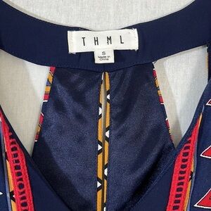 Anthropologie THML colorful geometric pattern embroidered dress with back cutout