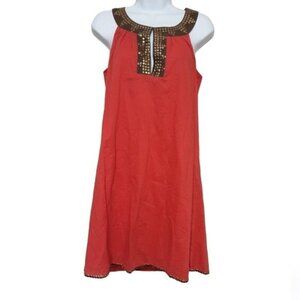Anthropologie THML Womens Orange brown with bronze embellishments mini dress size Small