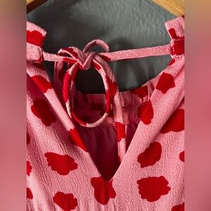 Brighten up your wardrobe with this Anthropologie THML pink and red print halter A-line dress. Featuring a vibrant pattern and a flattering halter neckline, this sleeveless dress flows into an effortless A-line silhouette. Perfect for Valentine’s Day dates, parties, or any occasion that calls for bold, romantic style.