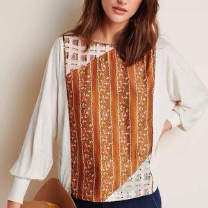 Anthropologie TINY Sammi Sequin Floral Dolman Sleeve Boho Beige Top/Blouse Women's Size Medium