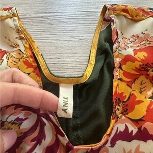 EUC TINY by Anthropologie Evesham Boho short sleeve top mixed material silky like polyester for floral print & green Rayon