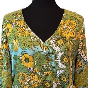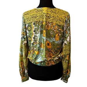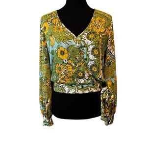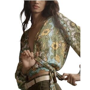 Anthropologie TINY Floral Paisley Wrap Top Size SMALL V Neck Puff Sleeves Blouse