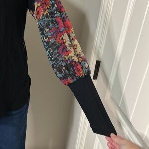 Long sleeves with semi-sheer floral loose arms with black banded cuffs