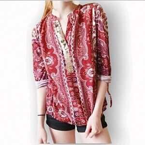 Anthropologie TINY Sequin Devas Popover Tunic Top Size Small