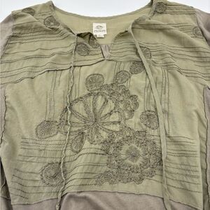 Anthropologie | TINY brand | Olive Green Embroidered Women's Top | size large