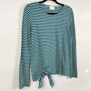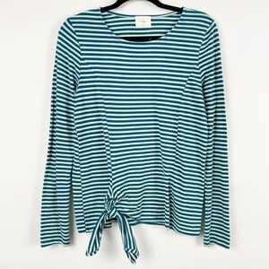 Anthropologie T.La Barela Tie Waist Striped Long Sleeve Top, Sky - Size S