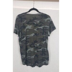 The Anthropologie T.La Camo Flutter Sleeve Medium Tee Shirt is a stylish and versatile top perfect for summer. Made of a comfortable cotton and modal blend, this short sleeve shirt features a round neck, pullover closure, and a colorful camouflage pattern. Its regular fit and lightweight fabric make it suitable for various occasions such as casual wear, workwear, or even a party. With its biker and rock themes, this tee exudes a trendy and grunge-inspired look that is both breathable and easy to care for, making it a great addition to any wardrobe for all seasons.