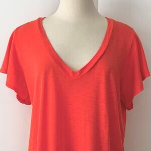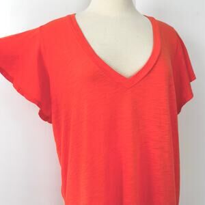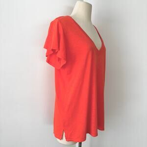Anthropologie T.La Classic Tee Top Short Flutter Sleeves in Orange L NWT