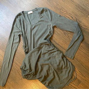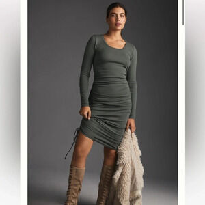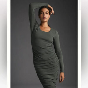 Anthropologie T.La Long-Sleeve Ruched Dress in Moss size Large