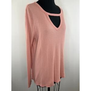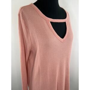 Anthropologie T.La Pink Nadia Cut Out Thermal Waffle Knit Tunic Top Size M
